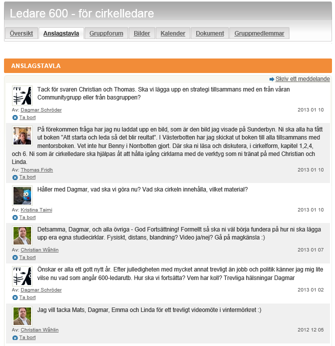 Detta gjorde att vi bestämde oss för att använda oss av ABF:s nya Communitysidor, som är väldigt enkla och på så vis kan metodiken överföras på de allra flesta textbaserade grupp-plattformar på nätet. Efter sommaren kom dock en ny webbaserad lösning för First Class som ser betydligt enklare och attraktivare ut, men det kom lite för sent in i vårt sammanhang. Detta är dock helt överförbart till de allra flesta liknande sociala media och/eller diskussionsforum.